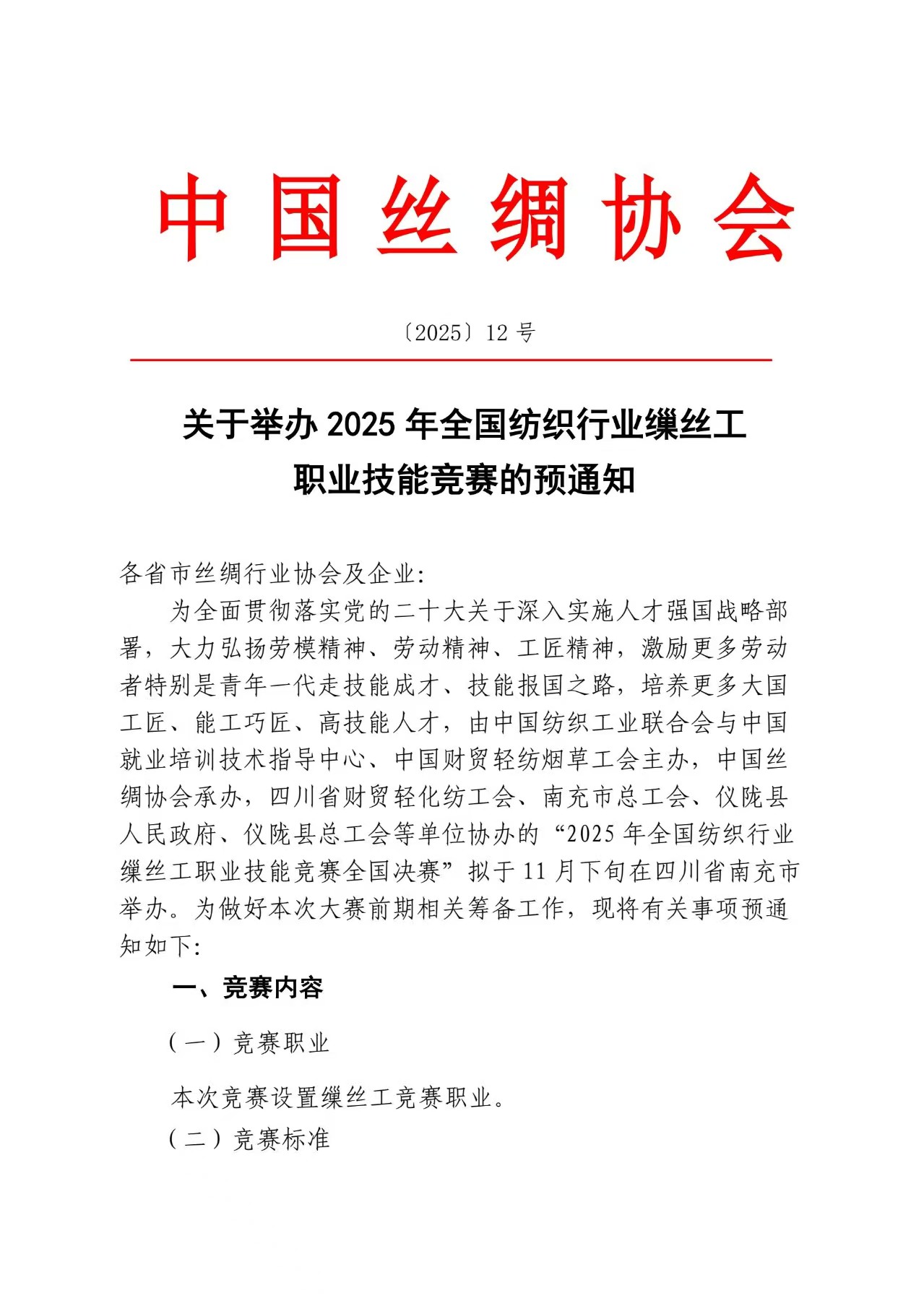 關(guān)于舉辦2025年全國紡織行業(yè)繅絲工職業(yè)技能競賽的預(yù)通知 .pdf