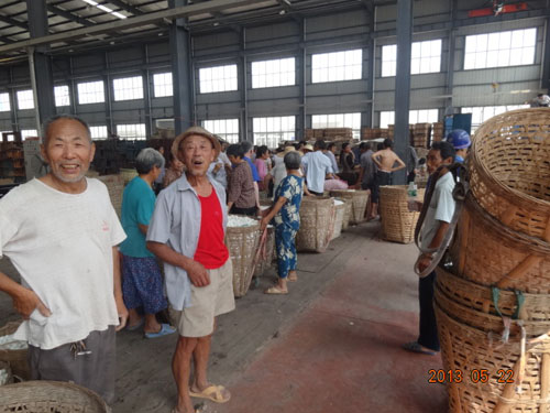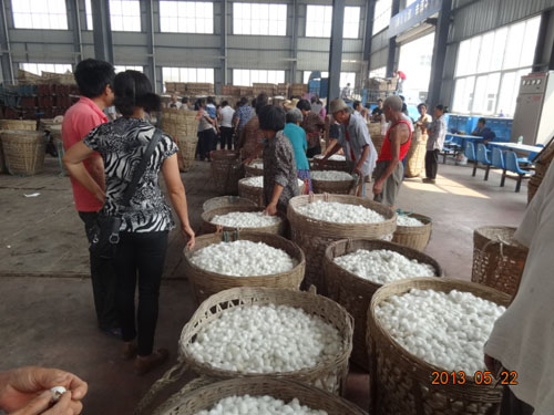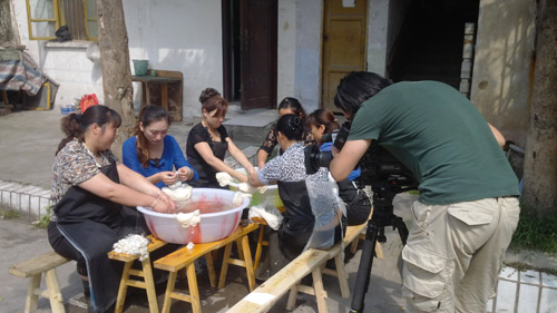 2013年6月3日中央電視臺七頻道《鄉(xiāng)土》欄目攝制組拍攝蠶絲被制作工藝