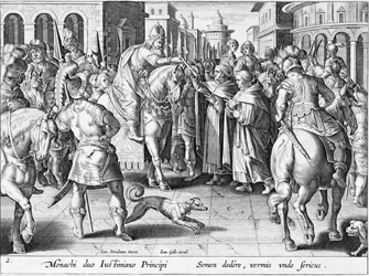 公元552年,拜占庭的查士丁尼大帝從兩位僧人手中接過(guò)藏有蠶卵的竹杖