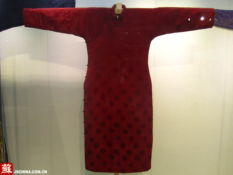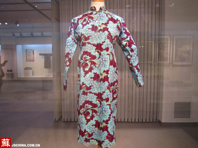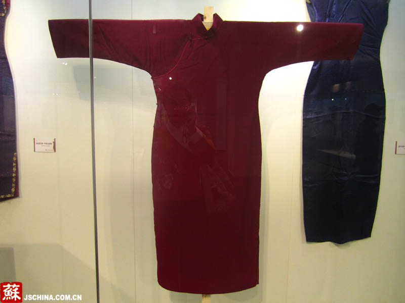 這件旗袍很鮮艷,顏色依舊亮麗如新。