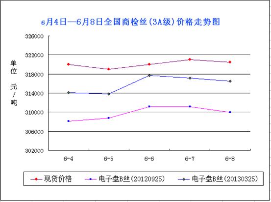 正如現(xiàn)貨一樣,由于說外盤影響,周一盤面較之上周出現(xiàn)跌價(jià),隨后,在市場作用下,盤面出現(xiàn)回暖,而達(dá)到上周本價(jià)位之后,行情再次凄涼,周末市場主力開始轉(zhuǎn)綠。本周數(shù)據(jù):嘉興市場0925周初結(jié)算價(jià)308100元/噸,周末結(jié)算價(jià)309900元/噸,整體上漲1900元/噸;(2013)0325周初結(jié)算價(jià)314100元/噸,周末結(jié)算價(jià)316500元/噸,整體漲2400元/噸。本周整體盤面的上漲并不意味著繭絲市場開始回暖,這一點(diǎn)從現(xiàn)貨的疲軟就可看出,并且,外圍方面也未出現(xiàn)漲價(jià)的支撐。上周出口消息,受全球市場持續(xù)不景氣的影響,我國真絲綢商品出口不斷下滑,4月的出口額為2.49億美元,同比、環(huán)比均為負(fù)增長,分別下降了16.63%和8.37%,繭絲行業(yè)出口形勢較嚴(yán)峻。繭絲綢消費(fèi)市場的疲軟是對國內(nèi)繭絲市場最致命的打擊。