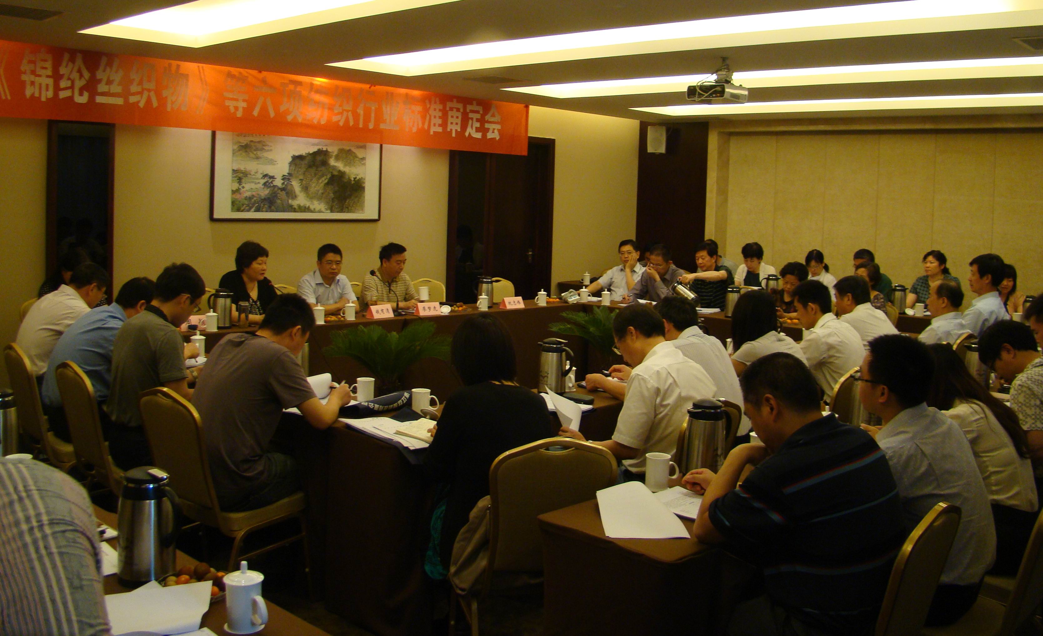全國(guó)絲綢標(biāo)準(zhǔn)化技術(shù)委員會(huì)于2012年6月14日在江蘇揚(yáng)州組織召開了《錦綸絲織物》等6項(xiàng)紡織行業(yè)標(biāo)準(zhǔn)審定會(huì)。參加會(huì)議的有來自江蘇、浙江、北京、山東、安徽、四川等。ㄊ校┑纳a(chǎn)企業(yè)、科研院所、大專院校、檢測(cè)機(jī)構(gòu)等相關(guān)單位的標(biāo)委會(huì)委員及專家共計(jì)55人。會(huì)議由全國(guó)絲綢標(biāo)準(zhǔn)化技術(shù)委員會(huì)秘書長(zhǎng)周穎主持,中國(guó)絲綢協(xié)會(huì)副會(huì)長(zhǎng)兼秘書長(zhǎng)、全國(guó)絲綢標(biāo)委會(huì)主任錢有清到會(huì)并總結(jié)。