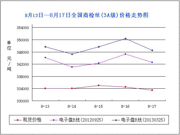 從圖表可知,本周現(xiàn)貨市場(chǎng)跌漲互現(xiàn),先平后漲最后跌價(jià),整體幅度不大,價(jià)格依然處于區(qū)間高位,但上漲勢(shì)頭疲軟,行情在向上可能難有大為。近幾周市場(chǎng)走勢(shì)來看,繭絲市場(chǎng)一直處于膠著行情,漲跌也就在區(qū)間中,并且幅度都不大,因此市場(chǎng)也進(jìn)入新一輪的博弈。本周價(jià)格:國內(nèi)3A級(jí)商檢絲現(xiàn)貨均價(jià)周初334000元/噸左右,隨后價(jià)格小漲,周末均價(jià)在333500元/噸左右,整體跌500元/噸。本周繭絲現(xiàn)貨前后基本未出現(xiàn)大的變化,從數(shù)據(jù)上看,高位也未有大的突破,而周末的跌價(jià)也不是很明顯。近期消息得知,嘉興市本級(jí)蠶繭主產(chǎn)區(qū)秀洲區(qū)決定今年的中秋蠶將于8月24日發(fā)種,同比提早1天,目前全區(qū)已訂好中秋蠶種2858張,比去年實(shí)養(yǎng)中秋蠶6015.25張,減少3157.25張,減少52.49%。另據(jù)了解,桐鄉(xiāng)市、海寧市等縣市也將于同一天發(fā)放中秋蠶種,海鹽縣則推遲一天發(fā)放。另外,重慶奉節(jié)縣今年共發(fā)放7000余張種蠶。由此可見今年秋繭生產(chǎn)或?qū)⒀永m(xù)風(fēng)火,產(chǎn)量方面過早判斷缺乏依據(jù)。就近期市場(chǎng)來看,短期內(nèi)繭絲市場(chǎng)或仍將延續(xù)區(qū)間盤整局面。