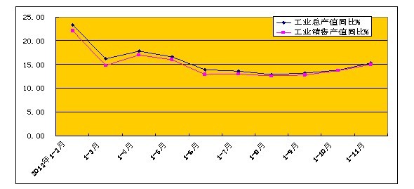 圖1 2012年1—11月絲綢工業(yè)總產(chǎn)值、銷售產(chǎn)值同比情況