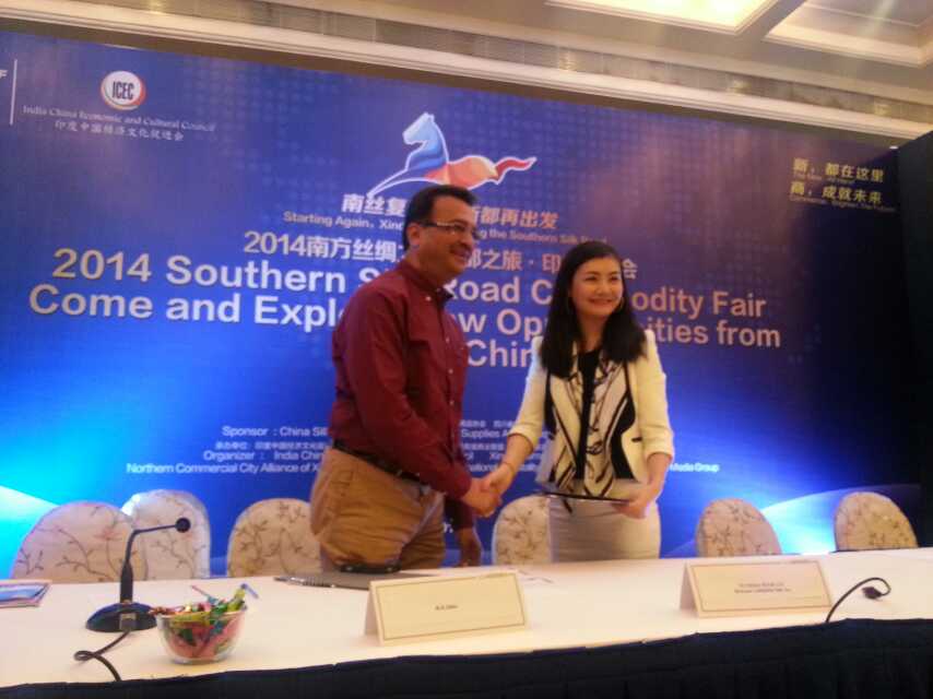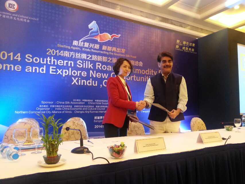 (本站訊 一夫2014年9月17日報(bào)道)由四川省成都市新都區(qū)北部商城管理委員會(huì)牽頭,中國絲綢協(xié)會(huì)、中國酒店用品協(xié)會(huì)、四川省絲綢協(xié)會(huì)主辦,新都區(qū)對外交流協(xié)會(huì)、新都北部商城商業(yè)聯(lián)盟、成都信基潤茂酒店用品城、成都傳媒集團(tuán)承辦的“2014南方絲綢之路復(fù)興之旅·印度商洽會(huì)”,2014年9月16日在印度班加羅爾正式啟動(dòng)。