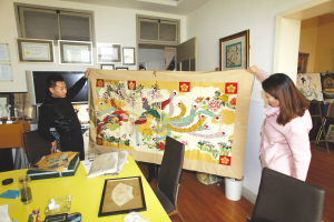 目前,只有我國(guó)江浙一帶的南通、蘇州等地還有為數(shù)不多的藝人在經(jīng)營(yíng)。緙絲傳人今安在?最近,記者來(lái)到江蘇南通宣和緙絲研制所一探究竟。