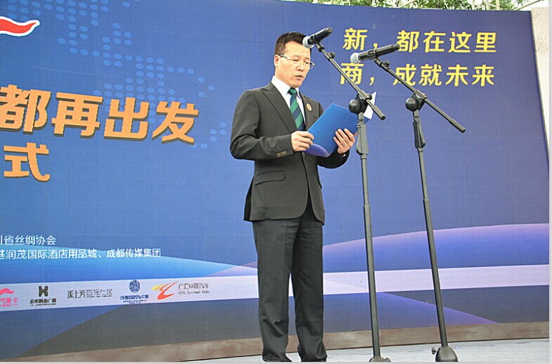 中國絲綢協(xié)會會長楊永元在講話中指出:中國是世界絲綢的發(fā)源地,世界了解中國始于“絲綢之路”,而以成都為起點的“南方絲綢之路”更是功不可沒。四川素有“天府之國”的美譽(yù),成都作為國家級歷史文化名城,是西部地區(qū)重要的政治、經(jīng)濟(jì)、文化和商貿(mào)中心,更是我國繭絲綢生產(chǎn)的重要基地。新都作為南方絲綢之路起點紀(jì)念地,緊緊抓住國家實施“絲綢之路經(jīng)濟(jì)帶”發(fā)展戰(zhàn)略的歷史機(jī)遇,發(fā)起此次規(guī)模盛大、內(nèi)容豐富、影響深遠(yuǎn)的“南絲復(fù)興路、新都再出發(fā)”系列活動,將是對新絲綢之路全新開啟的“成都宣言”。