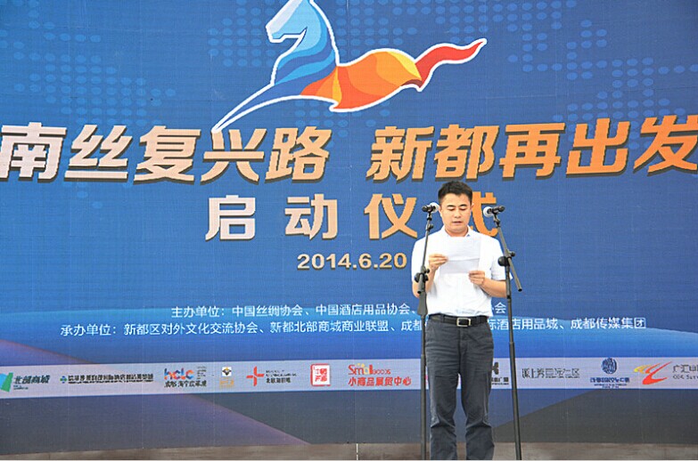 2014年6月20日,由中國絲綢協(xié)會、中國酒店用品協(xié)會、四川省絲綢協(xié)會主辦的“南絲復(fù)興路新都再出發(fā)”啟動儀式暨2014南亞特色商品博覽會,在錦門正式拉開帷幕。