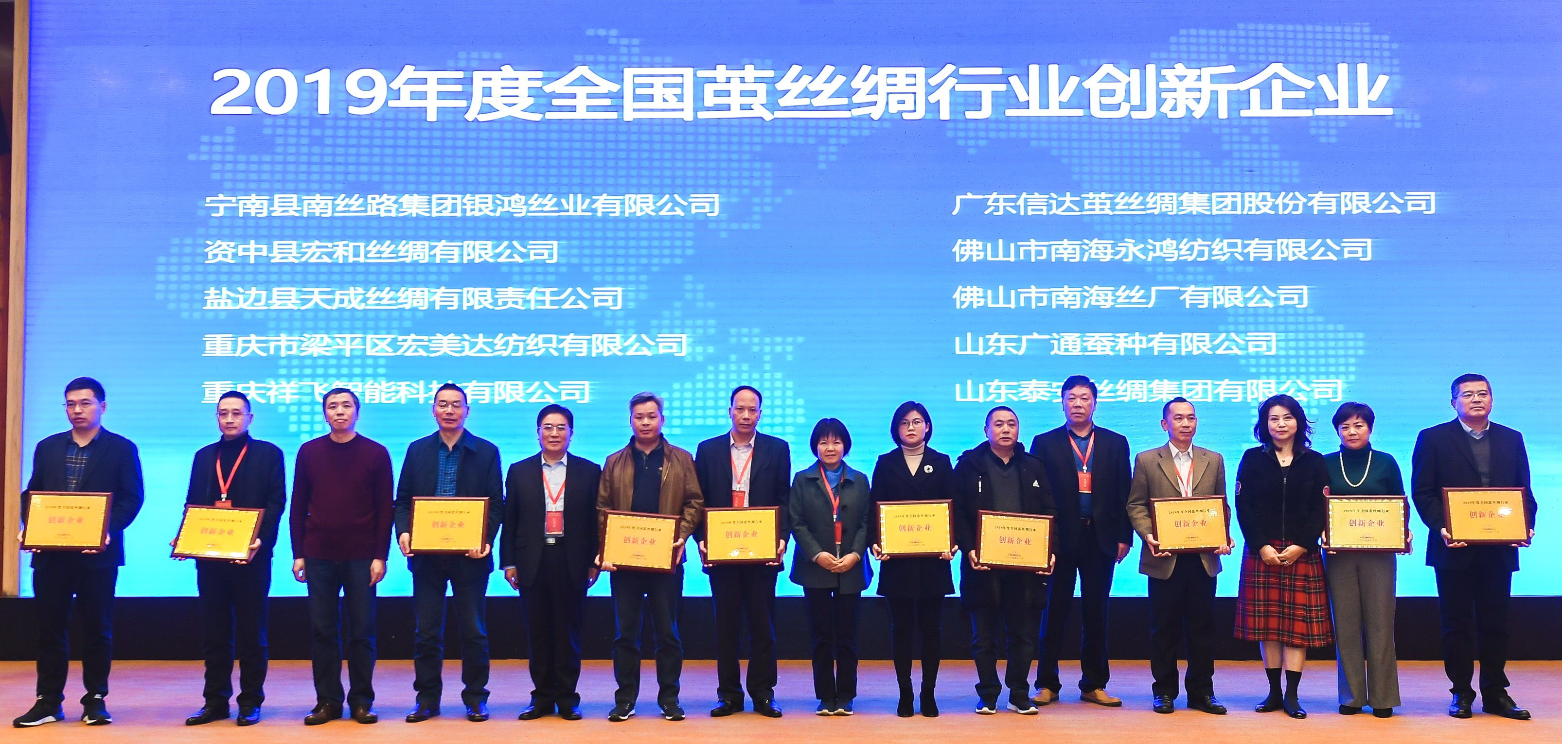 12月20日,中國絲綢協(xié)會副會長、四川省絲綢協(xié)會會長陳祥平率四川絲綢代表團出席了在重慶市召開的“2019中國絲綢大會”,代表團由來自南充、涼山、宜賓、廣安、資中、攀枝花、綿陽、成都、內(nèi)江、達州等繭絲綢主產(chǎn)市州的企業(yè)、科研院所和相關部門的代表25人組成。會議主題是“大時代、大變局、大智慧”。中國紡織工業(yè)聯(lián)合會副會長楊兆華、商務部市場運行和消費促進司(國家繭絲綢辦公室)副處長陳梓佳等領導在會上作了講話,中國絲綢協(xié)會會長唐琳代表第七屆三次理事會作了2019年工作報告,會議審議了工作報告以及增補理事、常務理事、副會長等有關議案,商定了2020年度協(xié)會工作重點,交流了企業(yè)創(chuàng)新經(jīng)驗,分析了2020年行業(yè)經(jīng)濟形勢,研討了“十四五”行業(yè)高質(zhì)量發(fā)展對策,表彰了“2019全國繭絲綢行業(yè)年度創(chuàng)新企業(yè)”和“2019全國繭絲綢行業(yè)協(xié)會先進集體”。其中,我省寧南縣南絲路集團銀鴻絲業(yè)有限公司、資中縣宏和絲綢有限公司、鹽邊縣天成絲綢有限責任公司等3家企業(yè)榮獲創(chuàng)新企業(yè)稱號,四川省絲綢協(xié)會、南充市繭絲綢協(xié)會兩家單位榮獲先進集體稱號。來自全國繭絲綢行業(yè)的代表260多人參加了會議。
